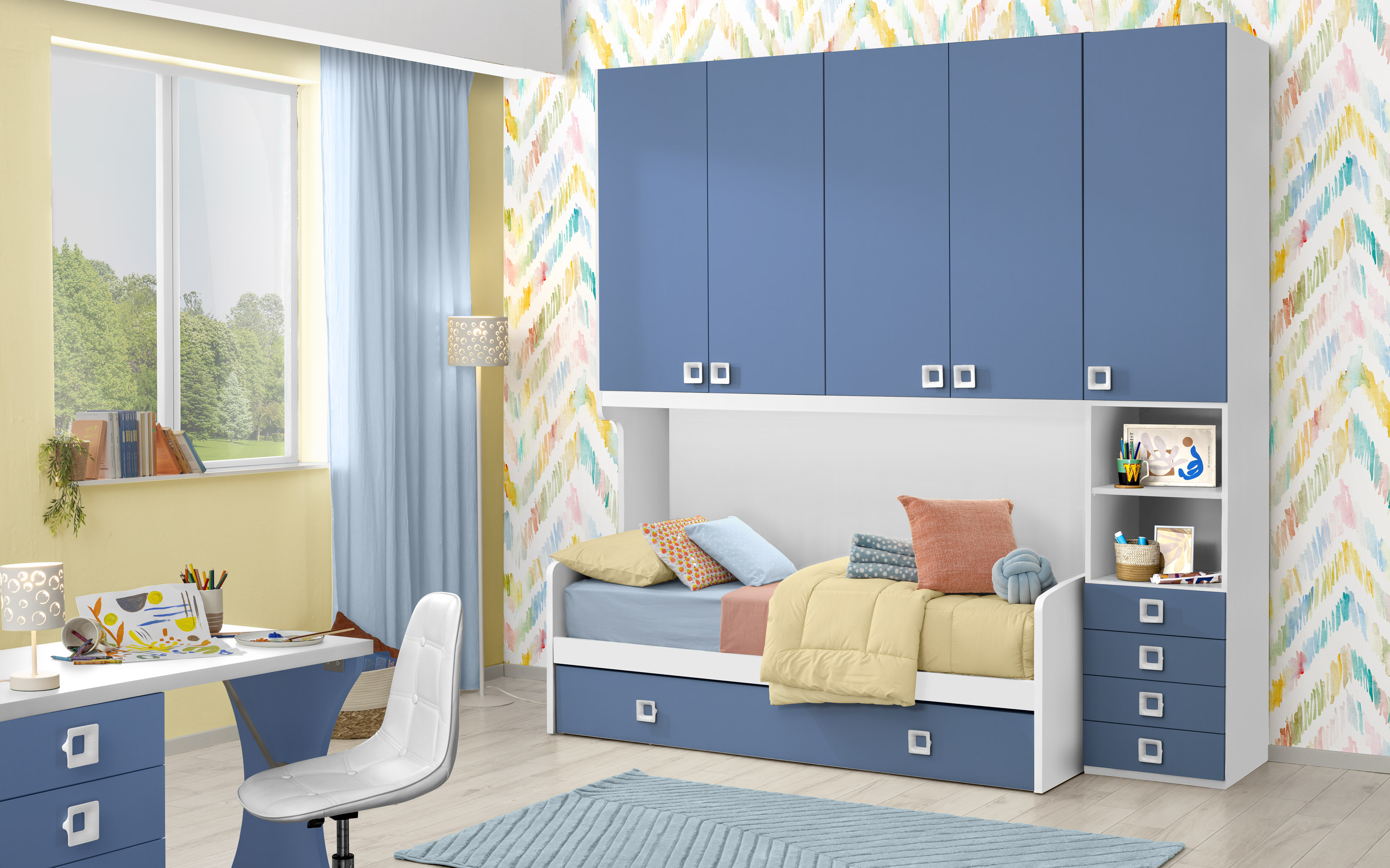 Scopri Alfa, Stanzetta economica con armadio a ponte. Stile e funzionalità al miglior prezzo. Sicurezza e risparmio garantiti. Spedizione in tutta Italia.