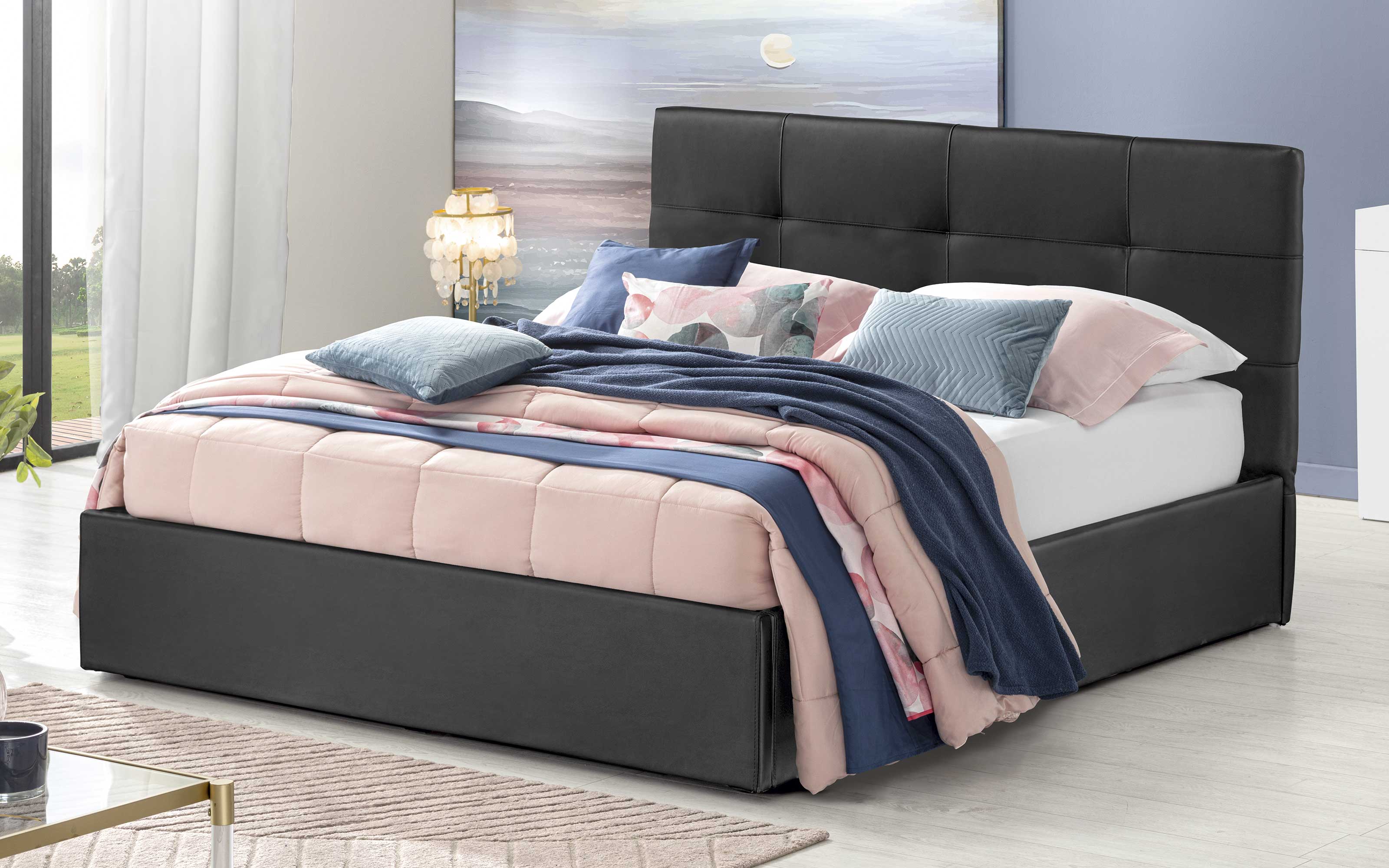 Scopri Big town: Letto contenitore matrimoniale con piedini Rivestimento eco nero. Scegli risparmio e sicurezza garantiti da Mondo Convenienza