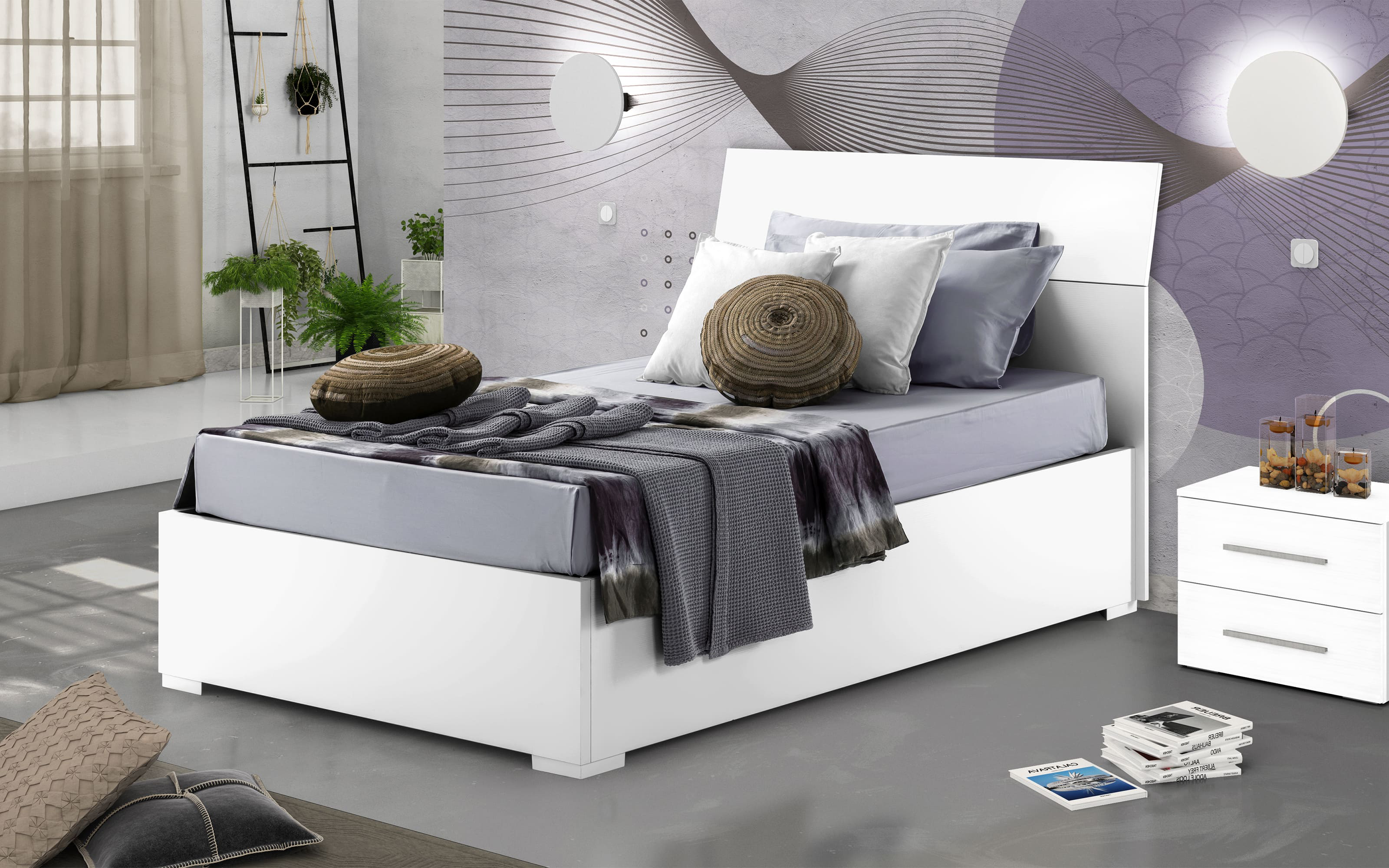 Scopri Eleonora: Letto contenitore una piazza e mezza bianco opaco. Scegli risparmio e sicurezza garantiti da Mondo Convenienza