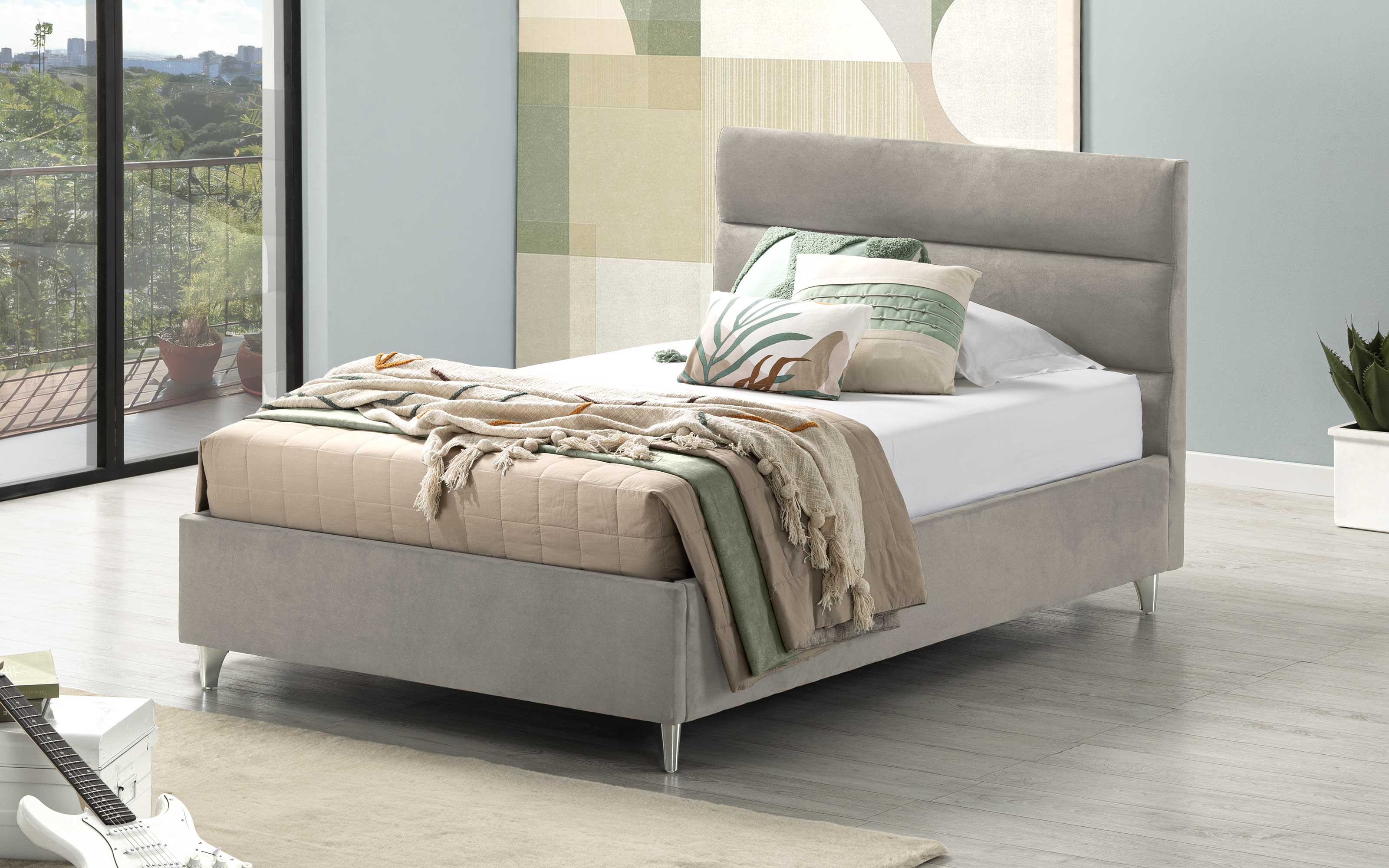 Scopri Noah: Letto contenitore una piazza e mezza con piedini tessuto loto grigio chiaro. Scegli risparmio e sicurezza garantiti da Mondo Convenienza