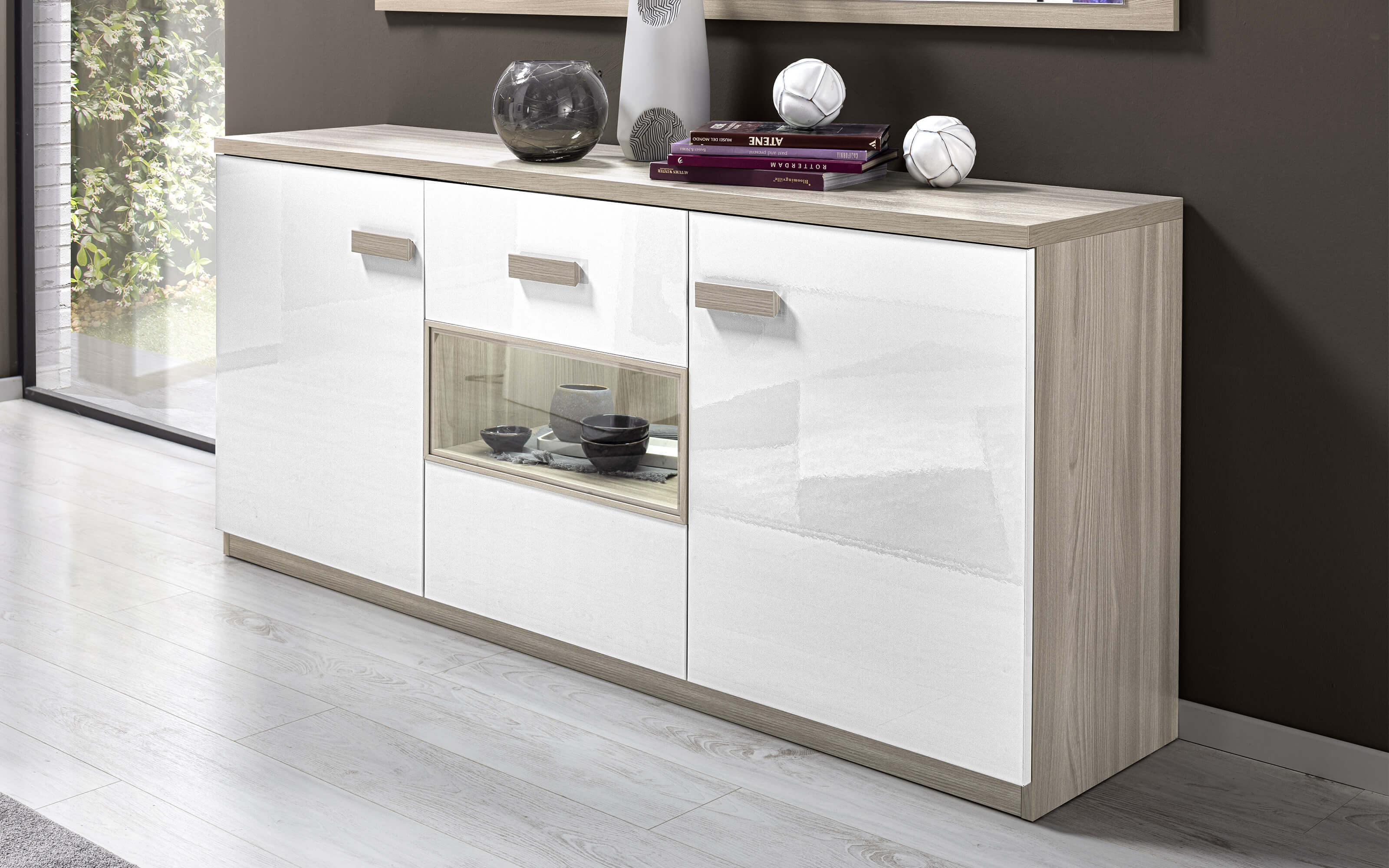 Scopri la Madia effetto Olmo naturale, 3 ante: Pegaso. Stile contemporaneo, minimal e funzionale. Risparmio e sicurezza garantiti da Mondo Convenienza.
