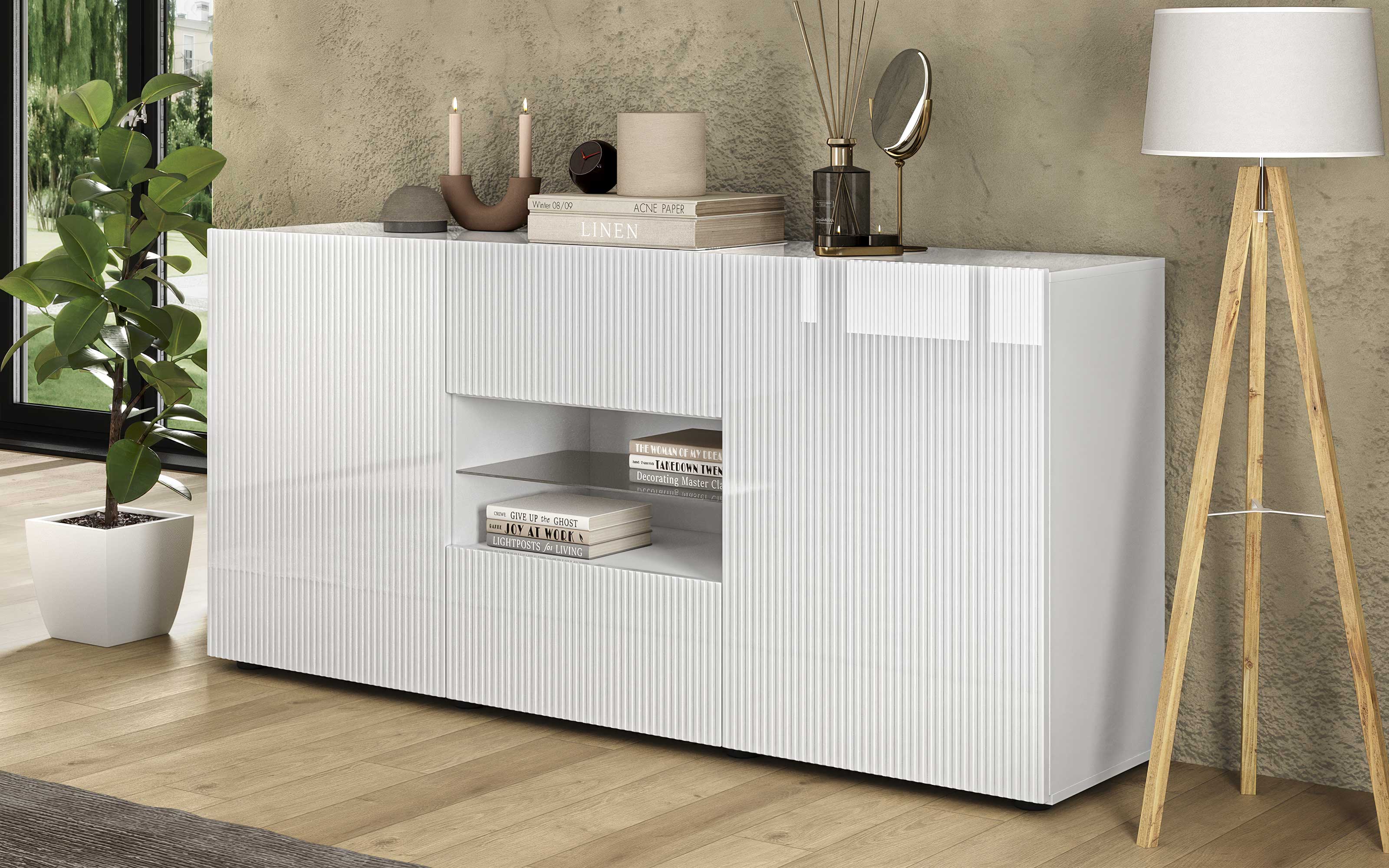 Scopri Rio: Madia 2 ante battenti 2 cassetti bianco lucido. Scegli risparmio e sicurezza garantiti da Mondo Convenienza