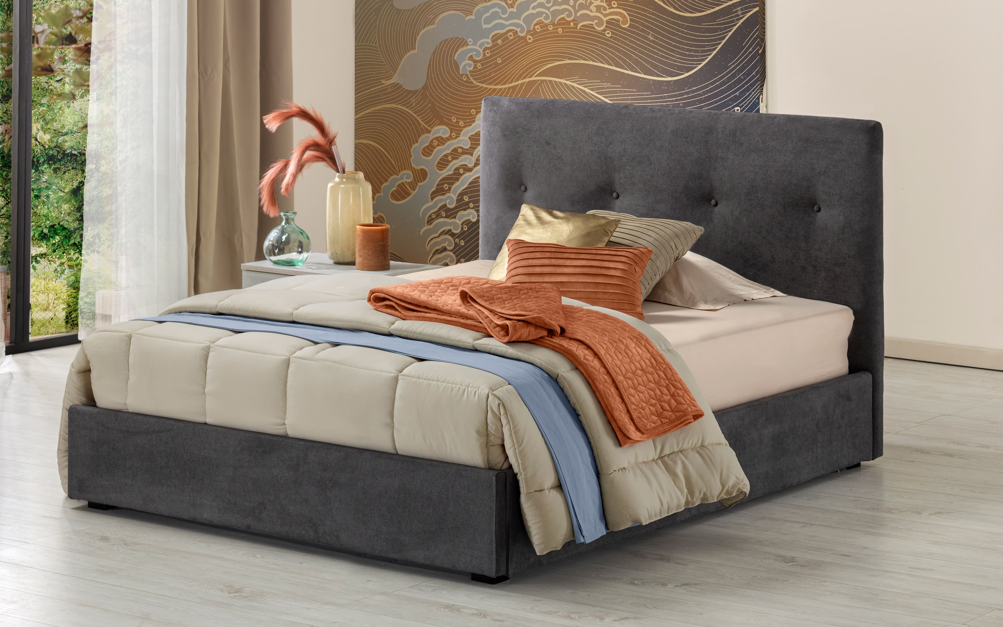 Scopri Selene: Letto contenitore una piazza e mezza Tessuto bacos ash. Scegli risparmio e sicurezza garantiti da Mondo Convenienza