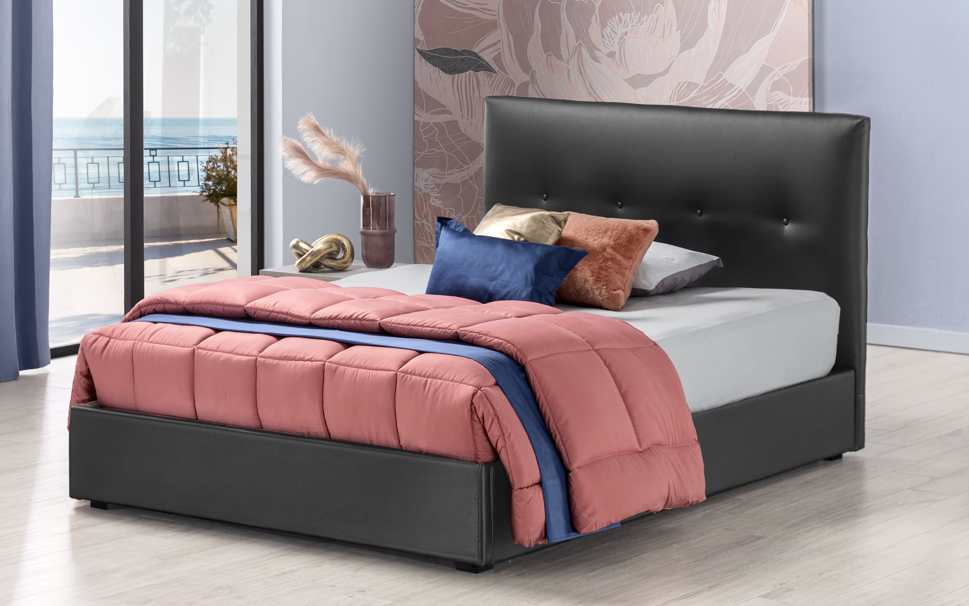 Scopri Selene: Letto contenitore una piazza e mezza Rivestimento eco nero. Scegli risparmio e sicurezza garantiti da Mondo Convenienza