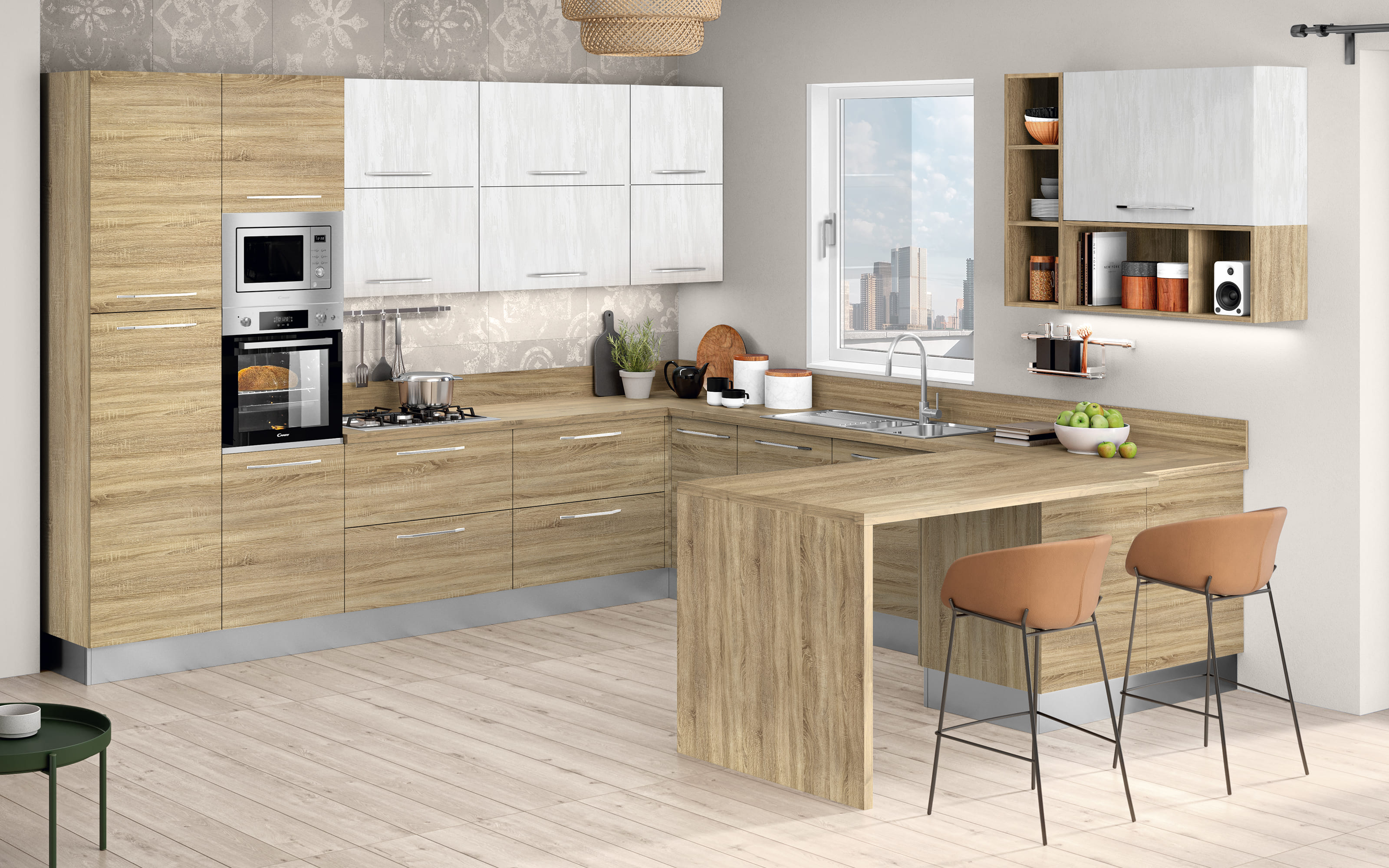 Scopri Stella, Cucina componibile, color rovere. Ideale per arredare una cucina abitabile, un angolo cucina o un cucinotto. Sicurezza e qualità garantiti.