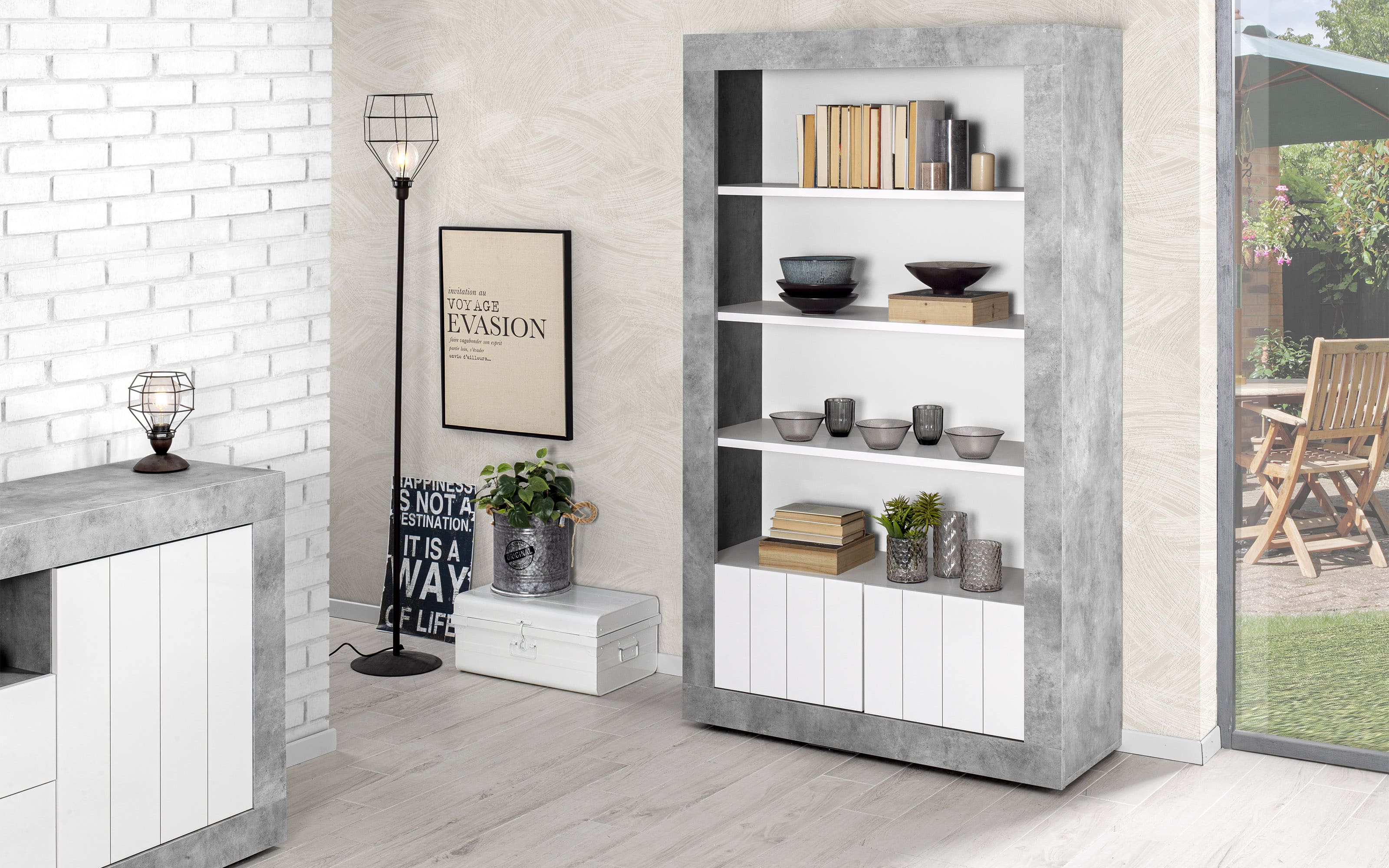 Scopri la Credenza Moderna con mensole e ante: Urbino. Stile contemporaneo, Minimal e funzionale. Risparmio e sicurezza garantiti da Mondo Convenienza.